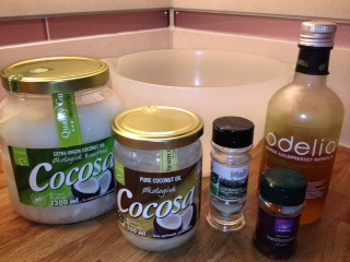 Rør til slutt inn ca 4ss smeltet ekstra virgin kokosolje (jeg bruker Cocosa) og la røren stå å godgjøre seg i kjøleskapet en stund før bruk, gjerne minimum 1 time.
