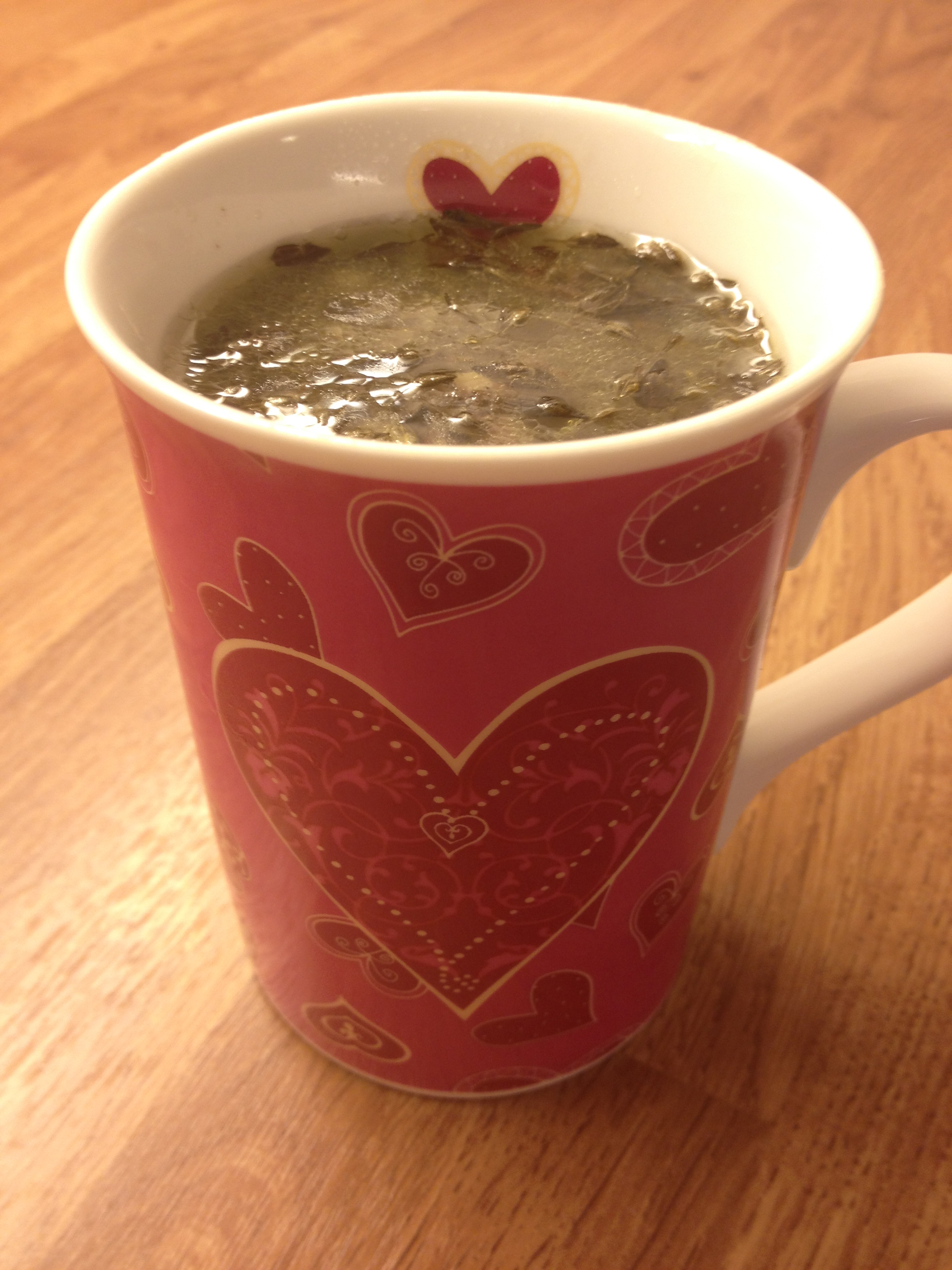 På bildet her har jeg øst opp kraft rett fra gryta, uten å sile bort urter og uten å skille fettet fra krafta. Nam-nam!